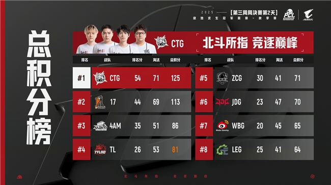 随后的几场,17战队、4AM、CTG等老牌战队的底蕴则是进一步被激发,在每局的最后4强中不断得分。